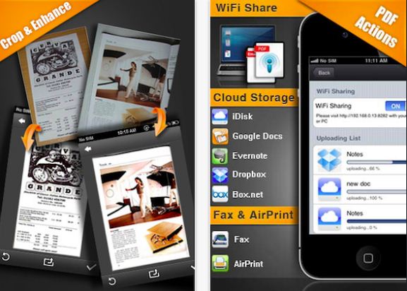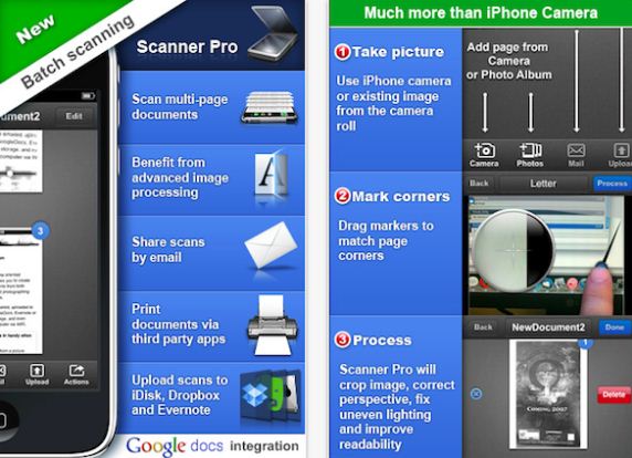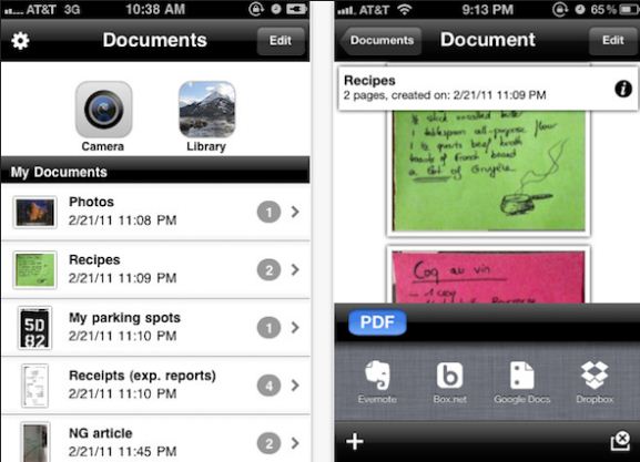 最常用的文档扫描软件之一,它可以用在iOS、Android和塞班系统上。只需拍摄一张图片,DocScanner便可以把扫描的文档自动存储为PDF格式,并且可以支持Dropbox、Evernote和Mobile.me,非常的方便。