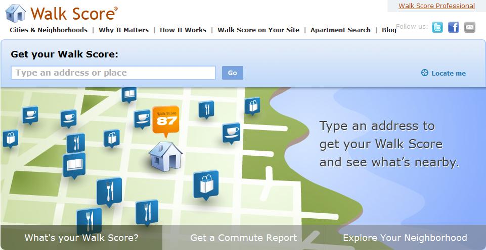 WalkScore ,让能告诉你附近各种基础设施的情况,这样就不用再费力地查找或询问别人了。