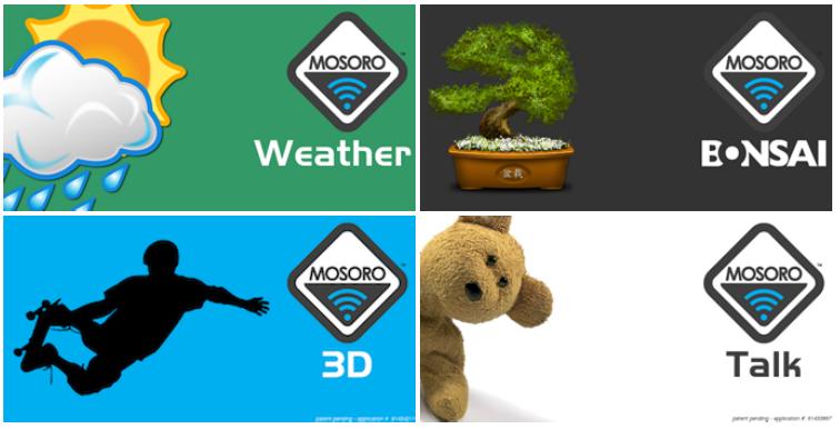 Mosoro 公司制造搭载蓝牙的各种设备,然后提供专用的 app 与之配套。该公司已经研发了两款硬件产品 3-D Sport 和 Weather ,并且已经着手 Talk 和 Bonsai 的开发。这些设备可以记录运动状况或天气信息,甚至可以播放音频和流媒体。它们都搭载有传感器用来记录信息。例如方便轻巧的 3-D Sport 就可以固定在你的高尔夫球棒上,记录你的上肢运动状况,然后把相关信息发送到你的智能手机。而 Bonsai 是一个内置媒体播放器的 WIFI 热点,可以发送视频音频甚至是应用,到你的指定设备上。