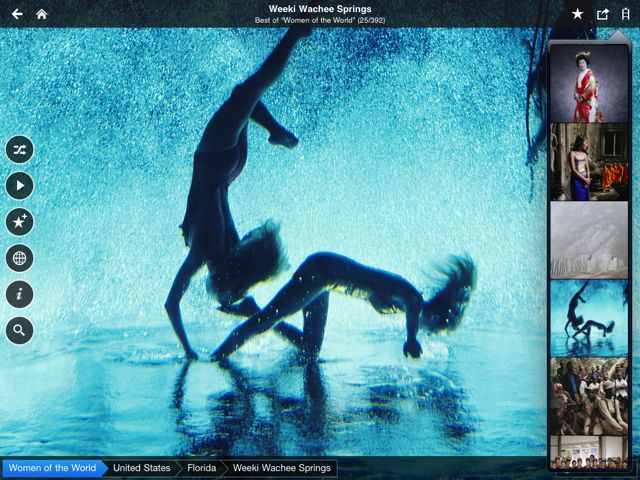 所有出自Fotopedia之手的应用都使用了相似的设计,界面漂亮、色彩丰富,可以浏览来自全球各地的高质量照片。这不是Fotopedia第一次与国际组织合作了,它的处女作Heritage就是与联合国科教文组织(UNESCO)的合作成果,展示了来自UNESCO世界遗产网站上的照片。
