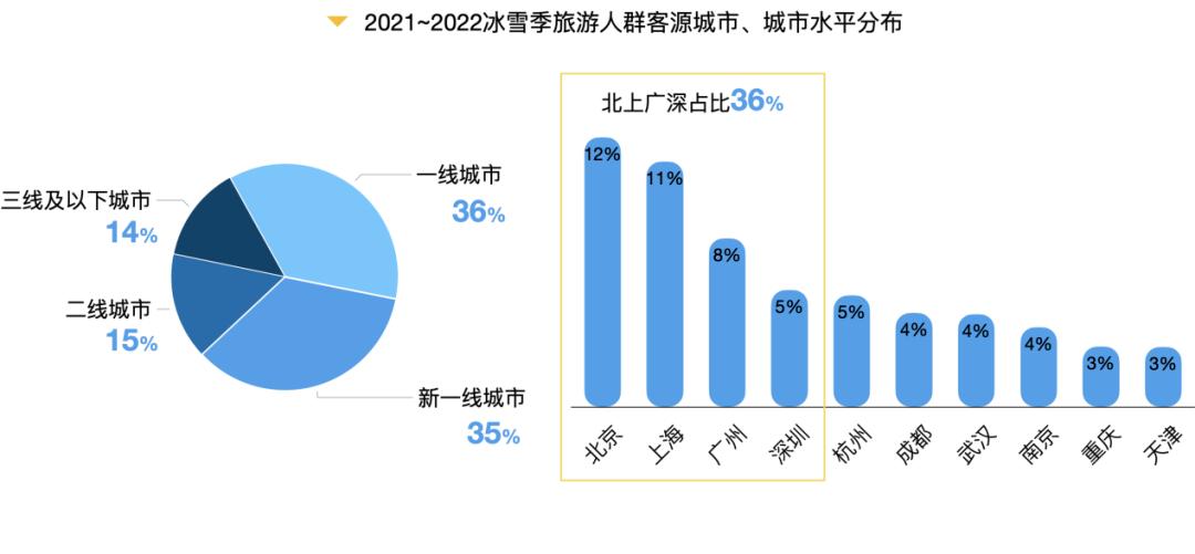 图表来源于中国旅游研究院和马蜂窝旅游联合发布《中国冰雪旅游消费大数据报告(2022)》:从冰雪旅游客源分布上来说,北京旅游人数占比最大