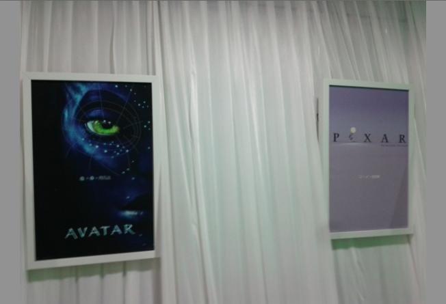 墙壁上挂着《阿凡达》和皮克斯等在工业设计上极富魅力的作品或者公司LOGO
