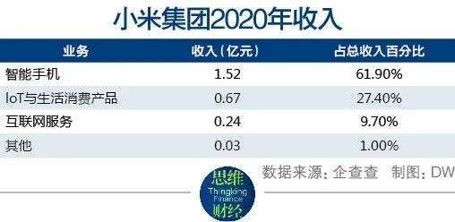 从公司2020年度财务报告来看,小米集团来源于智能手机的收入占总收入61.9%,loT(物联网)与生活消费产品收入占比27.4%,两者为其主营业务。而一直以来小米集团的大部分投资业务都围绕其主营业务和未来发展方向,进行技术提升和产业链布局,例如人工智能、物联网、汽车和半导体等。