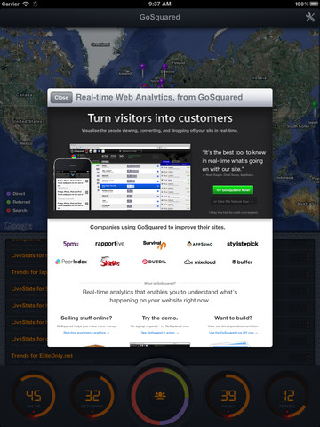 LiveStats不是由GoSquared自己开发,他们只是提供了API。如果你想随时掌握自己的网站访问状况,可以到