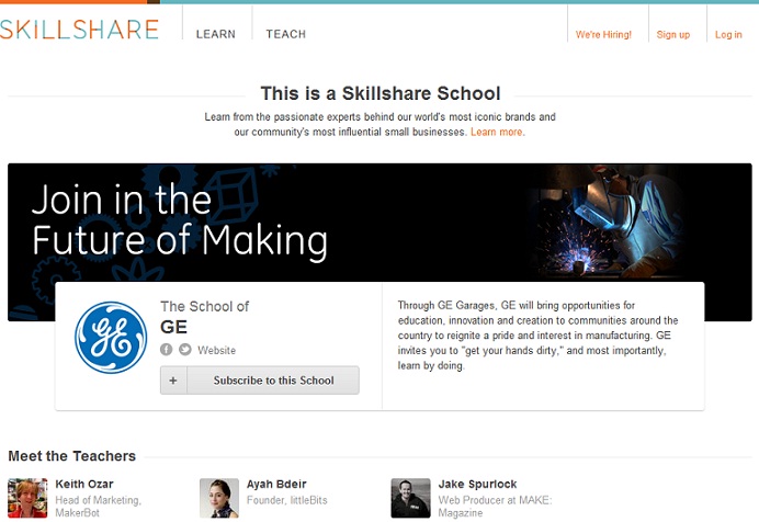 目前Skillshare “Schools”主页的第一个合作伙伴是