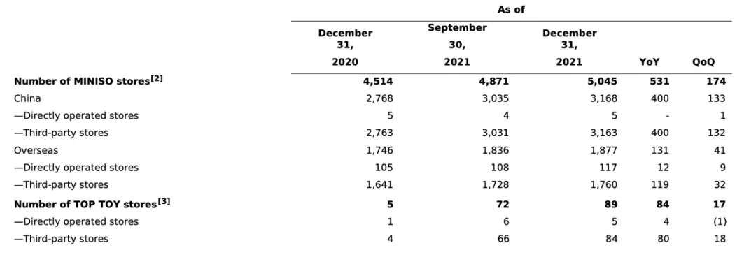 名创优品2021年年底的门店数据来源 ,图源 名创优品2022财年第二季度财报