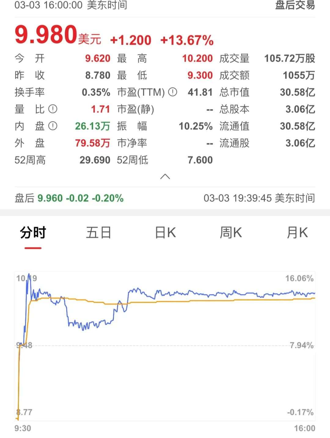 北京时间3月3日晚上,名创优品发布新一季财报后3小时,美股开市,名创优品大涨12.76%。截至收盘,涨幅13.67%。