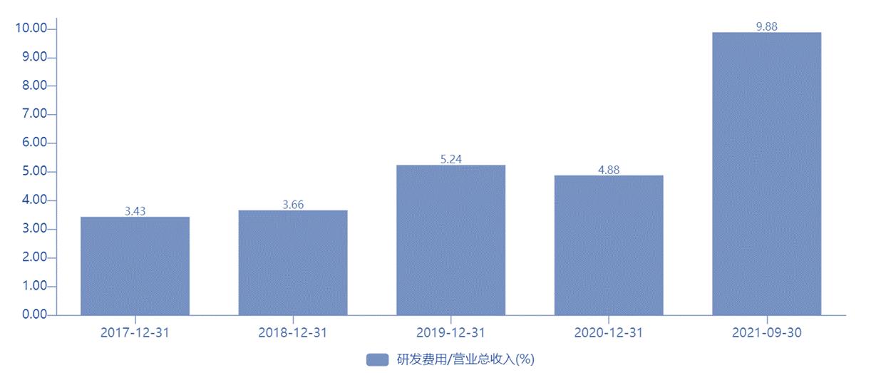 为了维持自身的竞争优势,巩固隆基在单晶硅片的成本优势,连城数控近几年的研发费用率持续提升,2021年甚至已经接近10%。