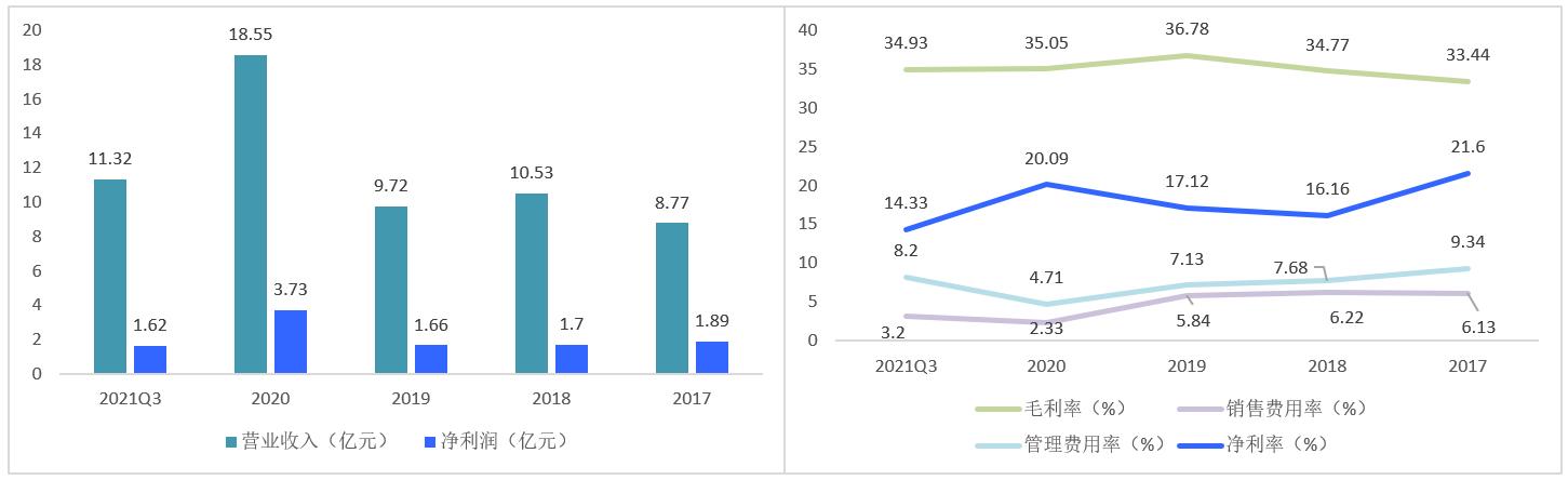 不过,尽管毛利率情况表现不佳,但得益于推行大客户战略,连城数控的期间费用存在一定的规模效应。2017-2020年,因来自隆基的营业收入大幅增加,连城数控的销售费用率及管理费用率均有较大幅度的下降,而净利率也因此一直维持在较高水平。