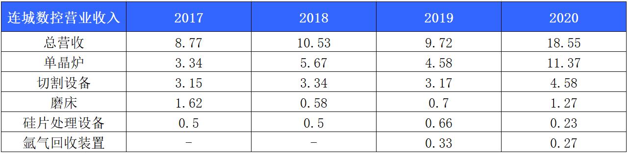 根据硅片的生产流程,硅料加工成硅片主要包括熔料-拉晶-切断-切方-磨滑-切片-洁净几个环节,而连城则生产与硅片制造相关的全部设备,主要包括单晶炉、切割设备、磨床、硅片处理设备和氩气回收装置五大类。其中,单晶炉为公司目前的主力产品,在营业收入中的占比达50%以上。