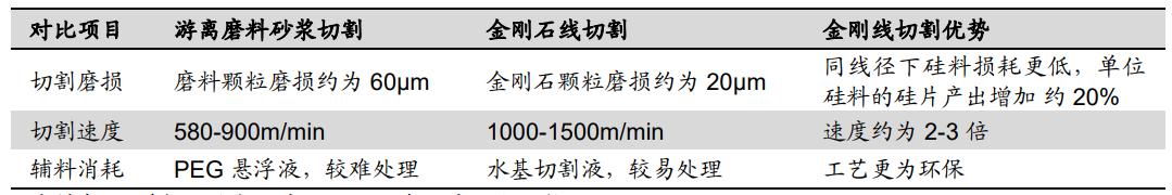 从发电效率来看,虽然单晶硅片明显优于多晶硅片,但过去由于行业主要采用砂浆线技术切割硅片,而该技术在切割单晶硅片时损耗较高,最终导致单晶硅片成本居高不下,一直未能得到大规模应用。