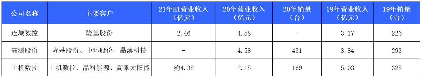 2、切割设备:市场参与者较少,连城数控技术与体量均处于行业前列