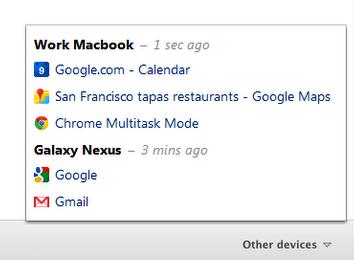 Chrome Beta便可以同步电脑上的chrome网页,但现在你在电脑上也可以查看其他设备打开的网页了。