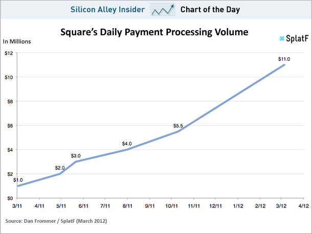 现在这家创业新秀已获得1.68亿美元投资,目前活跃用户大约1.4亿人。公司每天处理1100万美元交易,每年处理交易总额高达40亿美元。10个月前,Square刚刚获得了