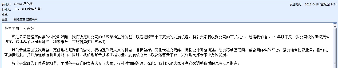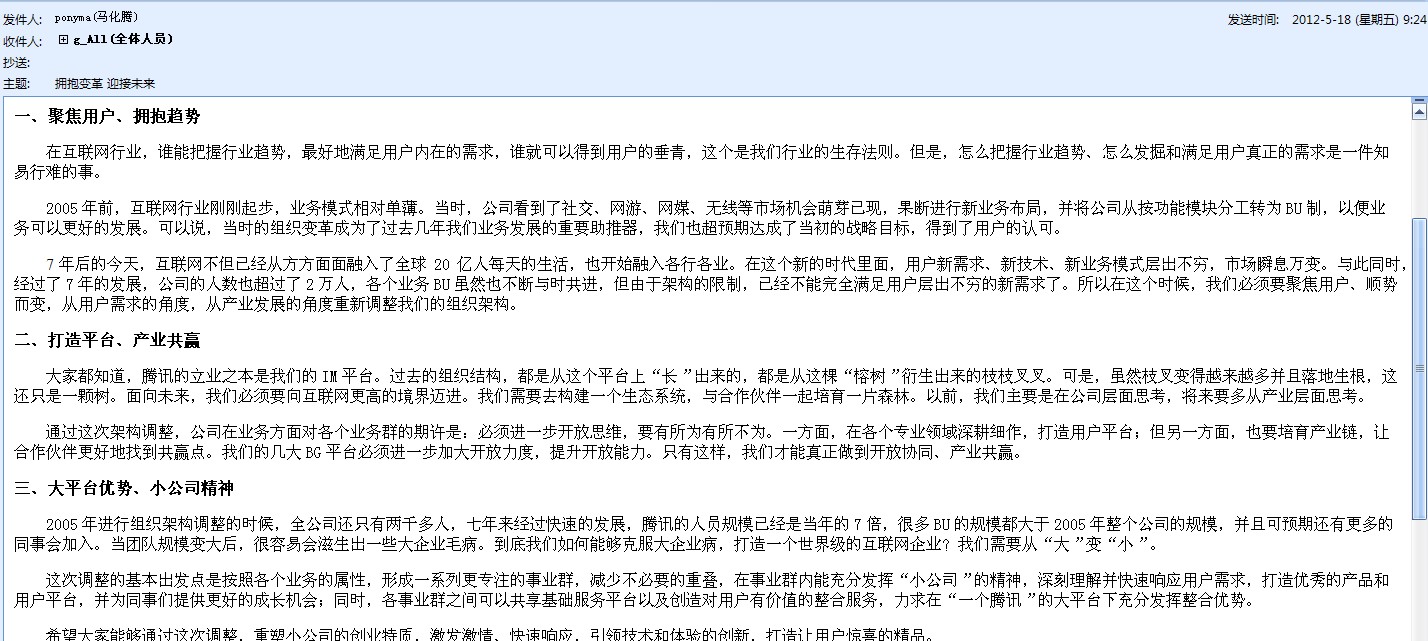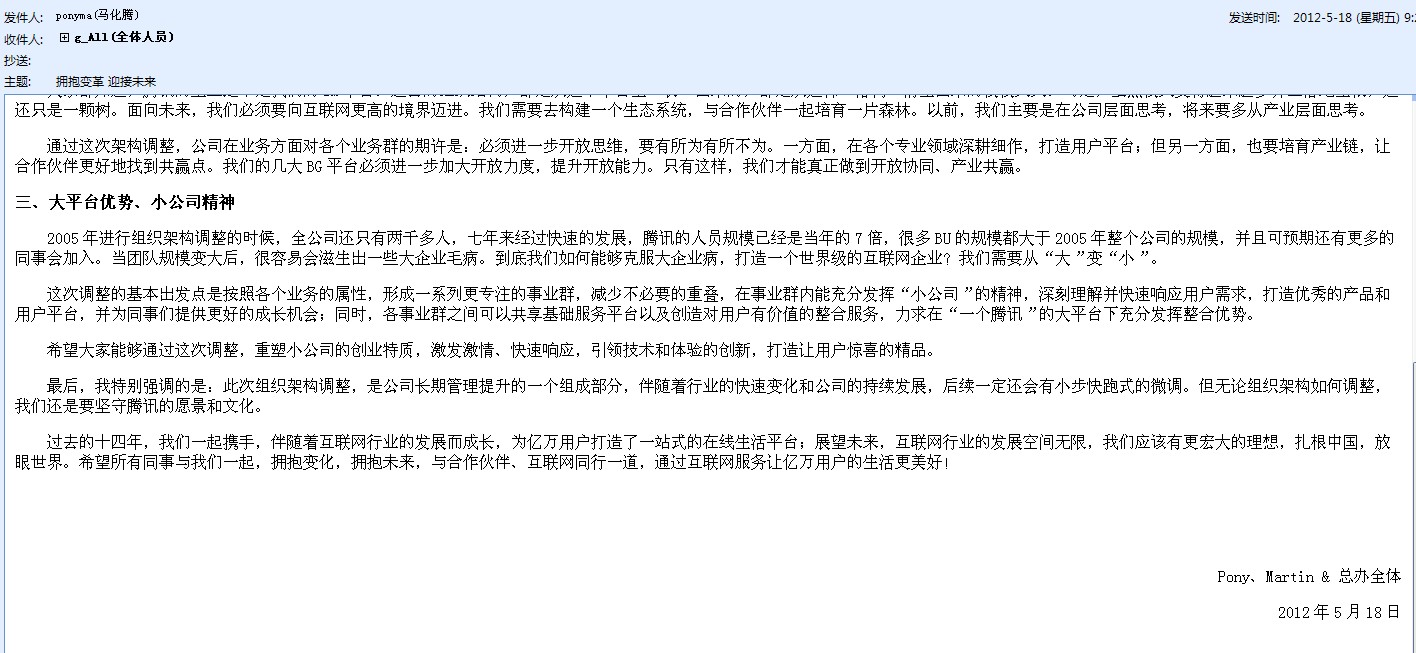 独家:关于组织架构重组,马化腾给全体员工的一封信