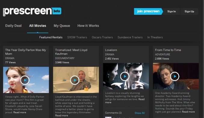 Prescreen 的特色来自内容的独家性,其拥有的电影往往尚未公映或是播放权力仅为其一家所有。Prescreen自身带有社会化探索的色彩,允许内容发布者和观看用户进行互动。Prescreen积累的用户收视电影的数据可以帮助制片方了解观众的口味,有利于他们分析市场的现状,创作出更好的内容。