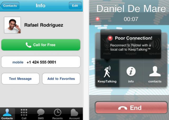 这款应用跟iPad的地址簿整合,允许用户第一时间查看,到底打哪些电话是免费的(同样在使用Rebel),打哪些外线电话很便宜。当一名用户A向另一名用户B发短信时,只要用户A选择“Collect Reply”(由A支付的回复),在短信中包含一个链接,允许B用移动网页回复,那么B的回复就是免费的。此外,基于数据网络的长电话有时候并不稳定,Rebtel还可以提供一个“Kepp Talking”(保持通话)功能,允许用户从原来的WiFi,3G等数据网络切换回传统的语音通讯网络。