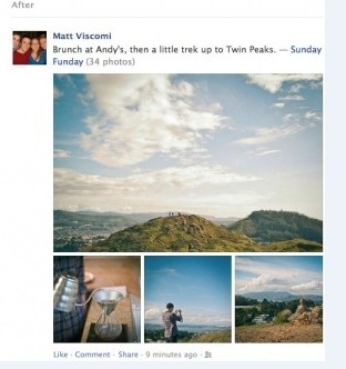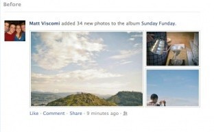 具体来说,Facebook称新鲜事中的照片尺寸会增大到原来的两倍大小,展示方式也会有相应的变化,以便在一个相册中展示更多的照片。相应的,新鲜事中的字体也会变得更大。
