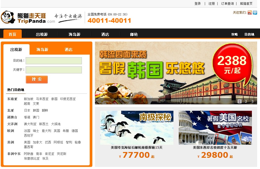 熊猫走天涯是国内一家专注出境游的轻电商旅游网站,上个月刚刚获得了超过100万美金的融资。今天网站在上线两周年之际进行了全新改版,趋向于轻电商旅游网站。