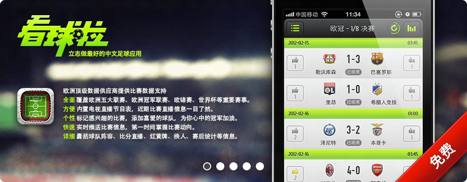 通过看球啦,球迷可根据国家、赛事、比赛时间和轮数查看比赛,并可选择支持的球队、查看积分榜和射手榜。点击每个比赛,可以看到直播页面和统计数据;再点击每支球队,则可以查看阵型、球员简介和该球队的最近赛况。另外,用户还可以在欧洲近百支球队、中国16支球队中选择三个自己喜欢的球队,这些球队的赛事信息便会随时推送给你。