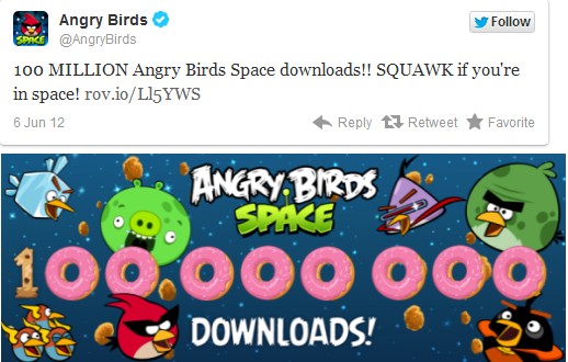 Twitter官方帐号透露,太空版《愤怒的小鸟》的下载量已突破1亿次。