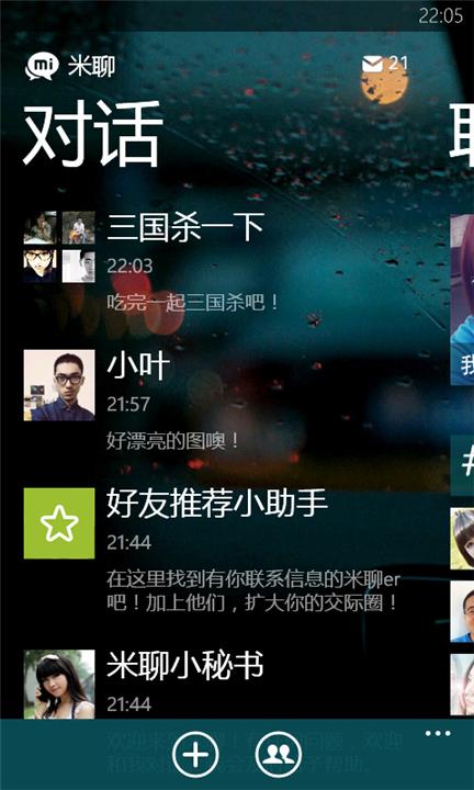 Windows Phone版米聊正式发布,支持个性主题功能
