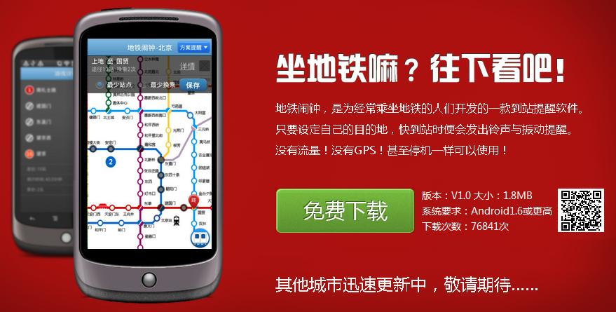 该应用目前仅支持北京地区,会陆续覆盖其它地铁城市,其iOS 版本也在筹备当中,有兴趣的Android 用户可以先