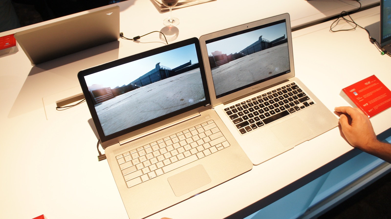 Vizio的笔记本方面,14寸售价900美元,15.6寸售价1000美元。Notebook为15.6+Full HD(1920 x 1080)+GT 640M,硬盘为最高1T+32G SSD。Thin+Light系列分14寸(1600 x 900)和15.6寸,均为内置HD4000集成显卡,使用SSD(128G或256G)。