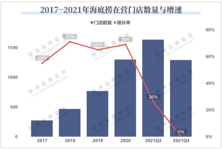 据极海品牌监测的数据,过去5年,海底捞门店年平均年增长率达到65%,店长上升通道顺畅,从服务员晋升为店长平均仅需4年。一旦扩张停止,或仅是增长率下降,“用双手改变命运”的号召就只能变成空洞的口号。