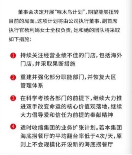 海底捞断腕自救策略之一就是,宣布在翻台率没有回升到4次/天前原则上不再扩张。