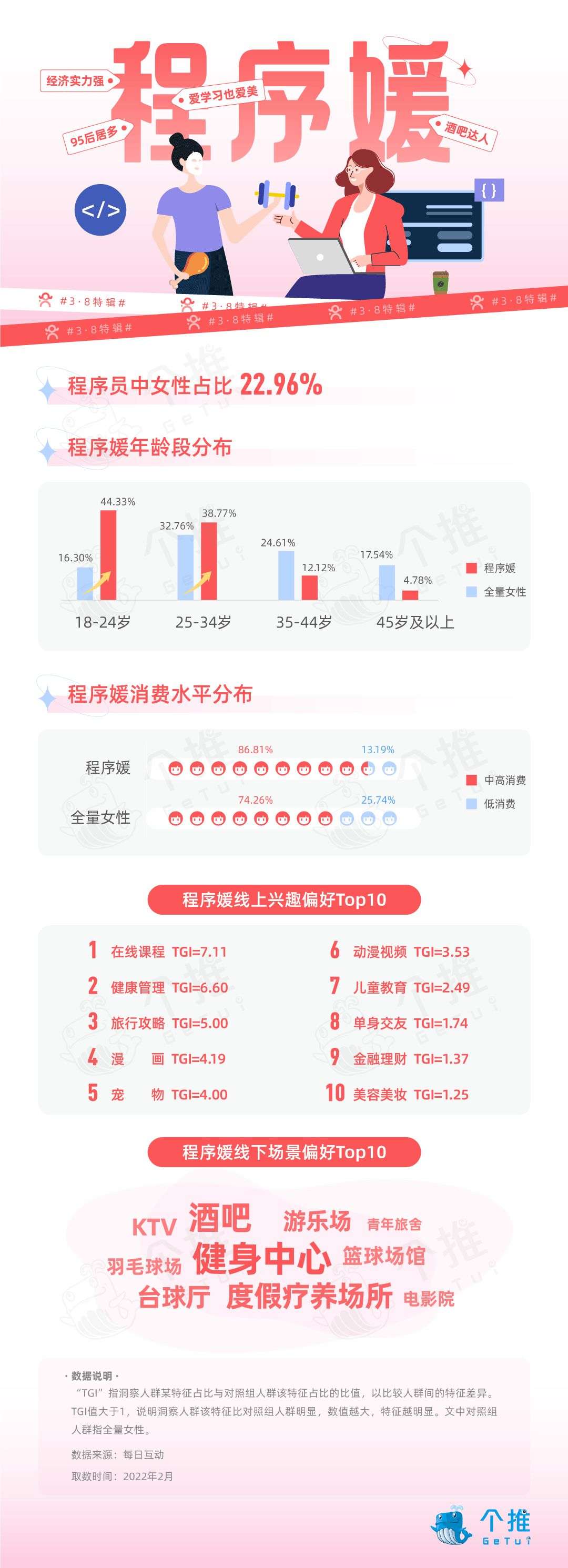 关于“程序媛”,你都了解多少?每日互动(个推)依托全网大数据对程序媛群体进行了深入洞察和研究,并于3·8女人节来临之际发布《2022年女程序员人群洞察报告》,带你一起走进程序媛的多彩世界!