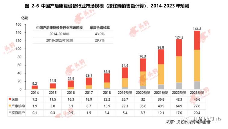 根据相关数据统计,目前由于产康市场的高速发展,产康相应的设备也进入快速发展期。整个市场从2014年的9.2亿,发展到2018年的39.5亿,年复合增长率达到43.9%。