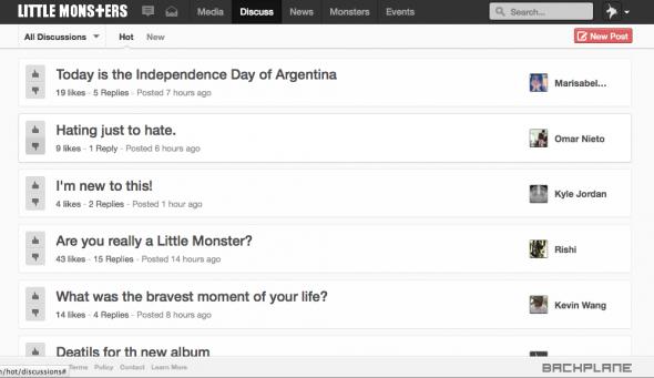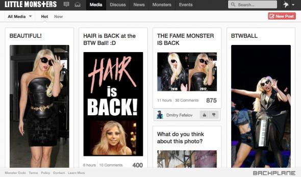 从风格上来看,Littlemonsters混合了Pinterest和以往典型的论坛组的特点,粉丝可发布主题发起讨论。所有一切内容都是围绕着Lady Gaga。