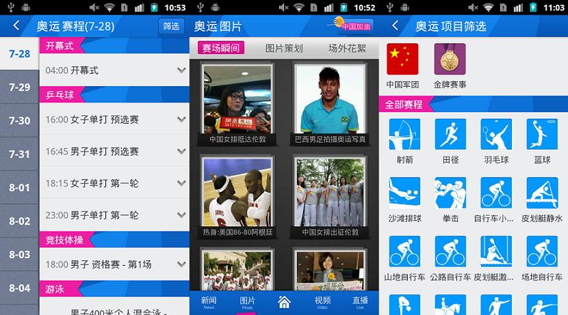 新版“网易新闻”让用户可以在手机或平板上直接查看奥运新闻、赛程赛果,或者观看奥运直播和相关视频。奥运定制版网易新闻是在原“网易新闻”App的基础上新开的一个版块(主页按钮位置),其中包括30个奥运和新项目新闻和周边资讯。用户可以根据奥运项目、奥运特色栏目等来订阅自己感兴趣的内容。同时也可以根据新闻、图片、视频、直播等分类关注自己感兴趣的话题。