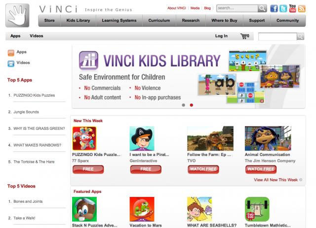 VINCI Kids Library,目前该商店中已有超过500款应用。Android应用开发者可以将自己的儿童产品发布到该商店中,并能以75%的比例分成。