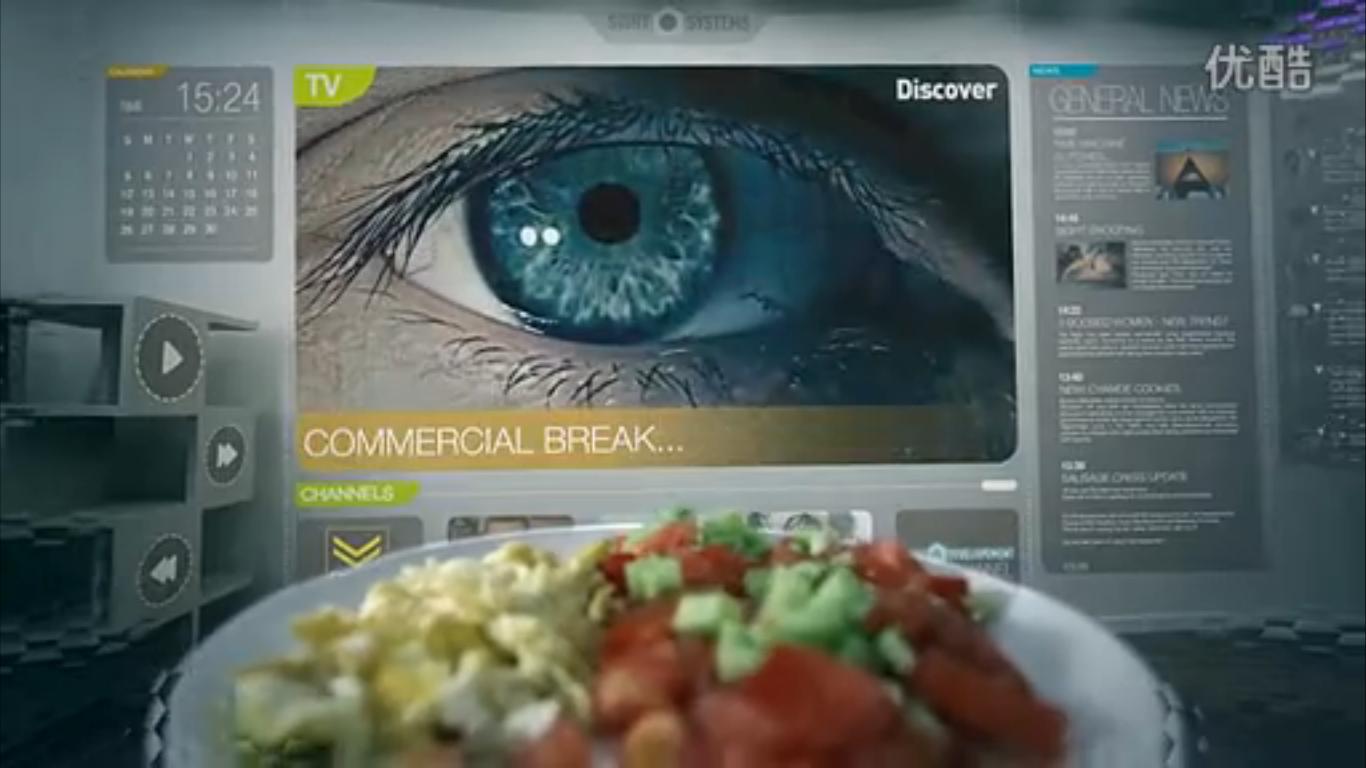 视频开始男主角Patrick趴在地上玩游戏的样子有点搞笑,隐形眼镜成了他的游戏机,他打开冰箱,眼镜告诉他冰箱里还有什么,还剩多少食材等等,这些应该是增强现实的典型应用吧。不过值得注意的是,Google Glass是通过语言交互的,而这个隐形眼镜是通过大脑的意识。
