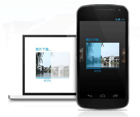 的照片都会被自动同步到照片中转站上去(默认只在Wifi环境下上传),无论是iPhone, Android还是PC客户端,都可以查看到最新照片, 既省了数据线的麻烦,还相当于为照片在云端做了一个备份。 用户还可以为手机默认相册以外的相册开启上传到中转站功能。