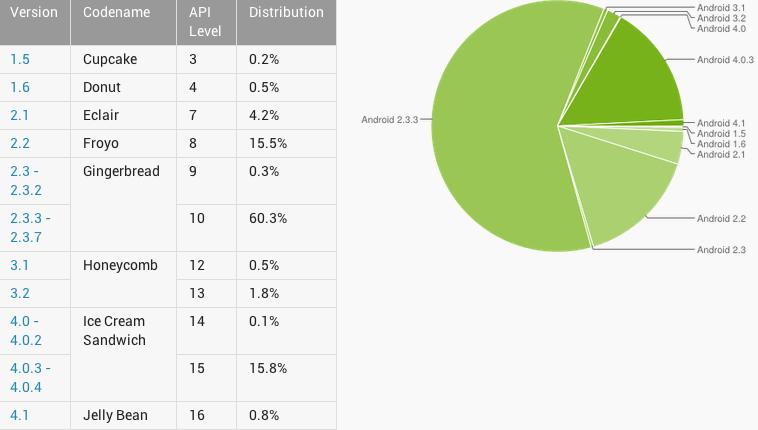 正式发布3个星期后,Jelly Bean系统在Android设备的份额达到0.8%