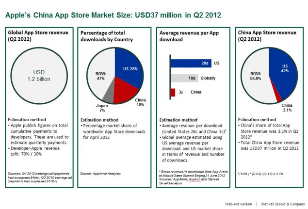 Stenvall Skoeld发布报告称,中国区 App Store 占其全球第二季度下载总量的18%,但所创收入仅占总量的3%。而美国市场在第二季度就用全球28%的下载量换来了总收入的42%。