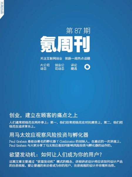 帮你把脉一周热点话题,最新行业动态,了解最新的产品、模式、概 念。创业者在这里现身说法,分享创业经验和教训;此外还有天使投资、VC和资深业内人士点评创业公司,告诉你什么样的创业公司更容易获得成功。