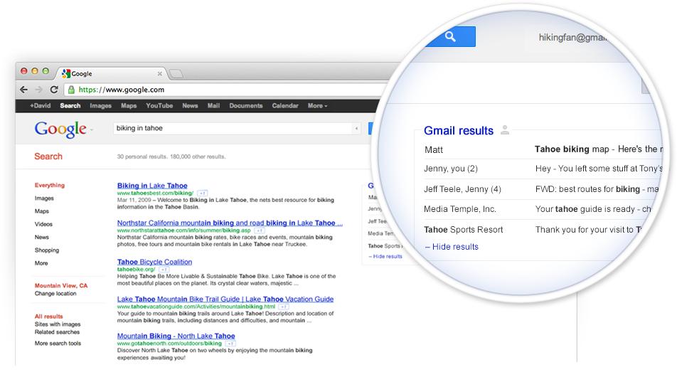 Google小范围测试个人搜索,搜索结果中包含Gmail邮件