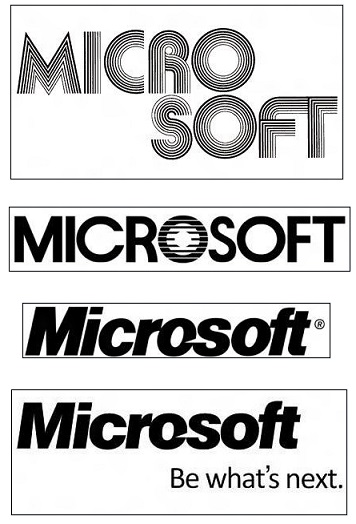 从1977年微软推出第一个Logo开始,微软历史上一共经历了四次演变。前四次分别是1977年的“Micro-Soft”、1982年被戏称为blibbet的“MicrOSoft”、1987年的Pac-Man版有一个小三角的“Microsoft”(至今仍在沿用),最后就是2010年底的“Microsoft”——“Be what's next.”。
