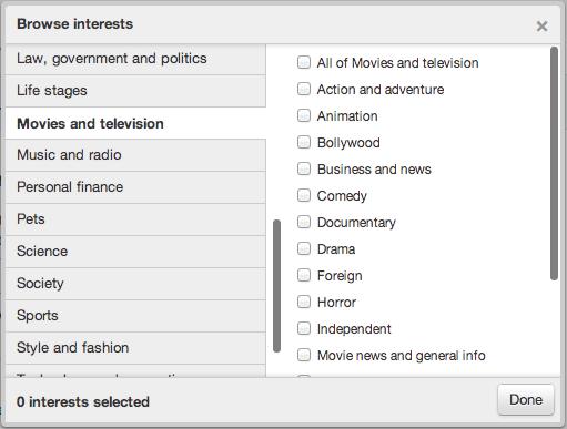 通过新推出的广告投放系统,广告主可以依据Twitter用户的兴趣标签来投放广告,这些标签总共有350类,从“宝莱坞”到“个人理财”不一而足。此外,广告主还可以挑选特定的明星用户,然后对那些同该用户的粉丝有着相似兴趣的用户进行广告营销,这种方式尤其适用于如作家、艺人明星类的广告营销。