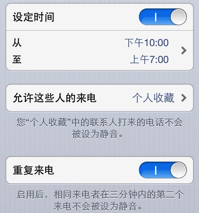 3、重复来电。当同一个人三分钟内连续打来电话时,第二个电话就不会再静音了。