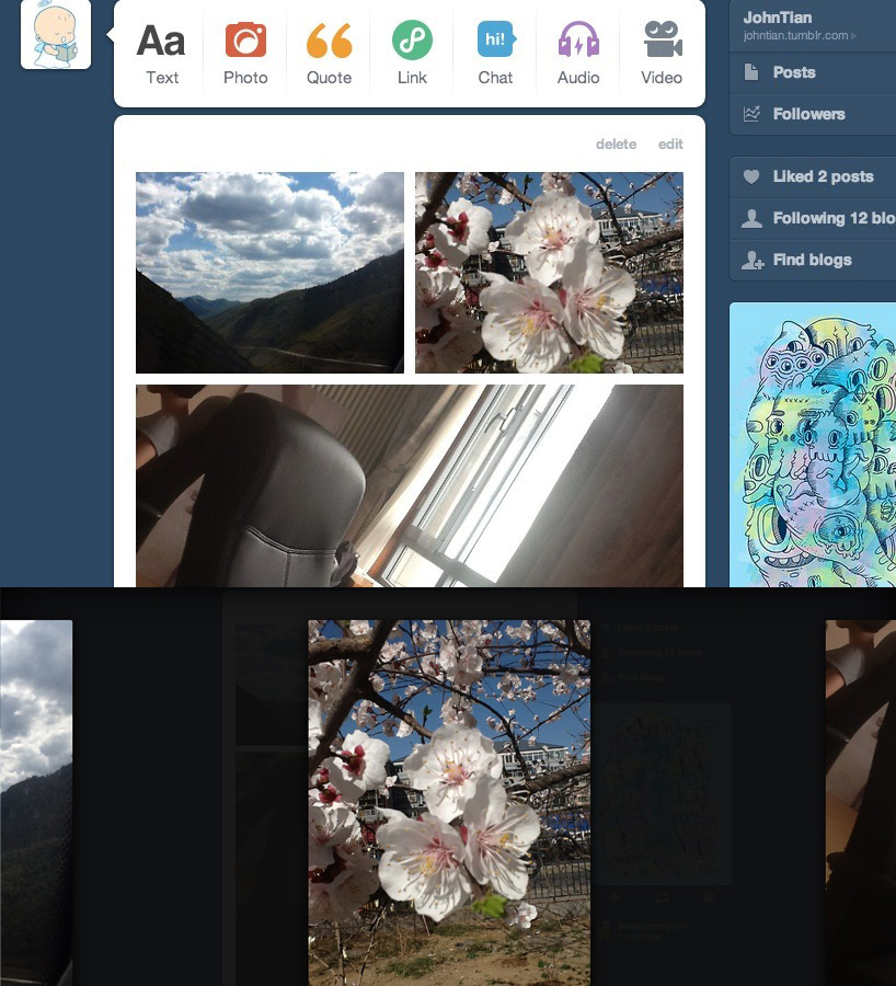 对于Tumblr用户来说,Tumblr移动客户端通常在发文时只能发一张完整照片,而Photoset这种有效率的图片打包形式则可以让用户在使用移动设备发图时更流畅。