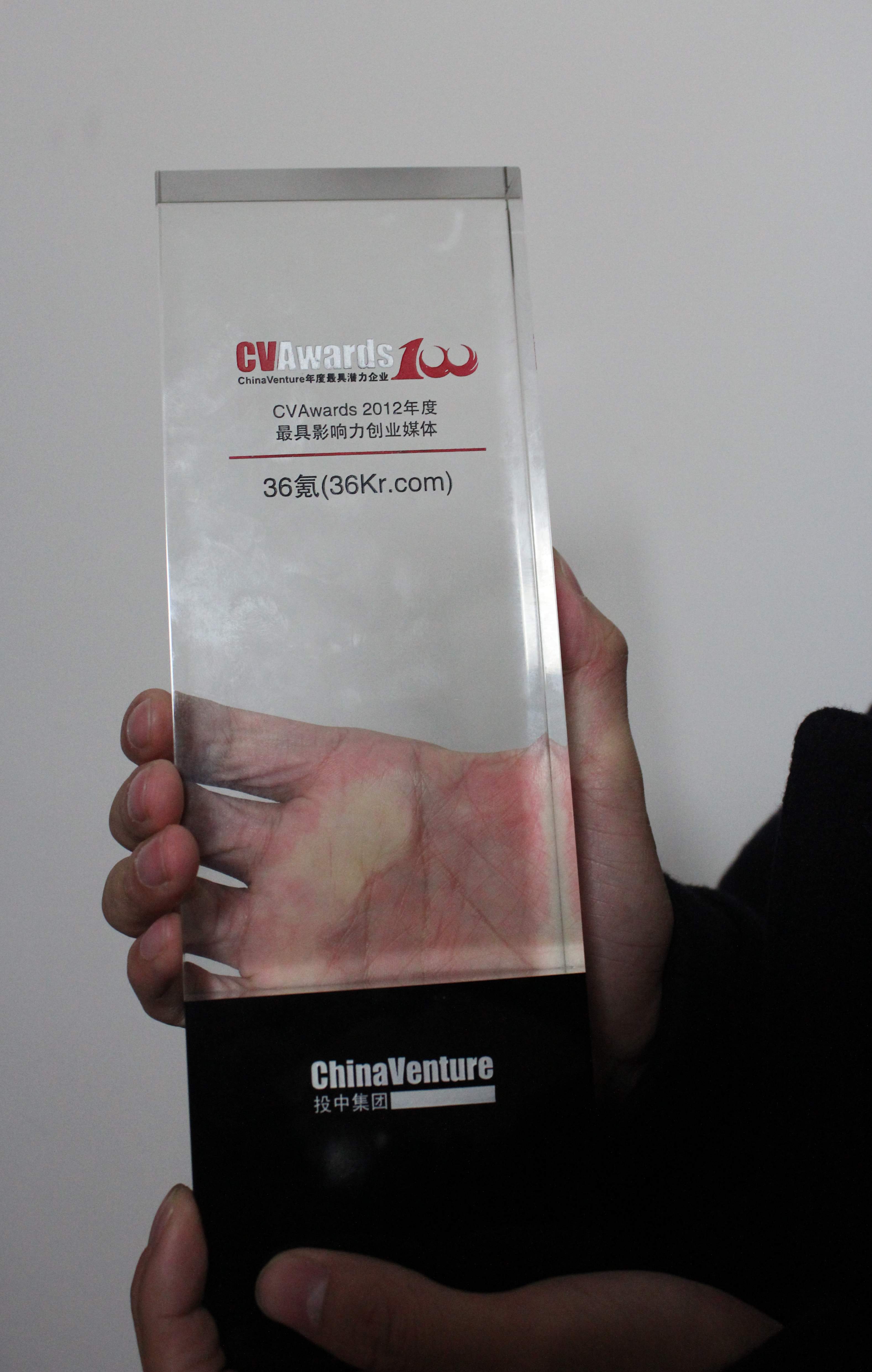 10月30日,投中集团在北京JW万豪酒店拉开了主题为“变革中的创新机会”的第六届"2012 ChinaVenture 中国投资年会”的帷幕,并在欢迎晚宴上颁布了CAAwards 2012年度的7个企业大奖,其中36氪获得了最具影响力创业媒体奖。投中集团CEO、艾瑞创始人@杨伟庆 先生在中国投资年会的欢迎晚宴上为我们颁发了该奖项。此外,真格基金、雷军也分别获得了最佳天使基金、最佳天使投资人等奖项。