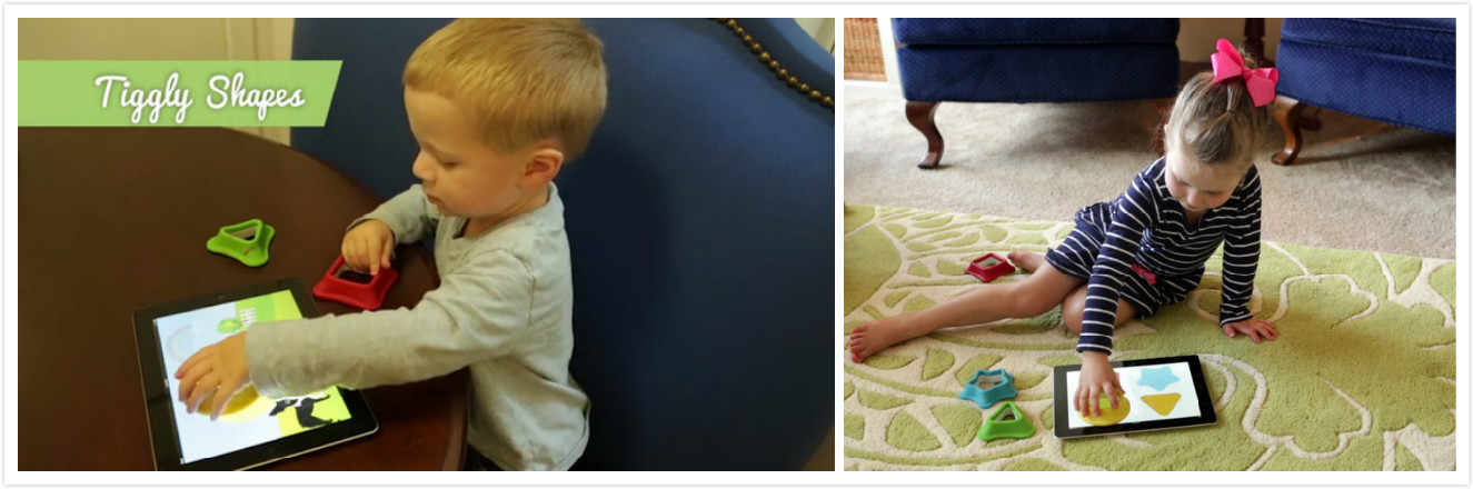 对于让孩子从小接触 iPad 这类电子设备,很多家庭还是比较谨慎。不过随着时间的发展,这些设备正走进越来越多的小孩手中。与其用禁止的方法不让小孩接触,很多家庭则顺其自然,把它作为教育孩子的工具。Tiggly 就专门针对蹒跚学步的幼龄儿童,推出系列类似“七巧板”的玩具和iPad应用,孩子可以通过它们熟悉最简单的颜色和线条等。