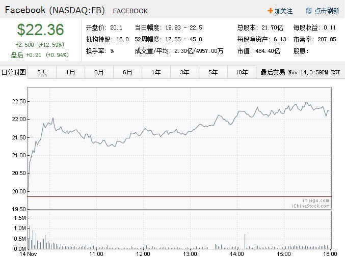 昨日Facebook迎来自IPO之后规模最大的一次股票解禁,约7.77亿股员工和早期投资者持有的限售股票开始在市面上流通。出人意料的是,Facebook的股价昨天非但没有下跌,反倒是上涨2.50美元,报收于22.36美元,涨幅约为12.59%。