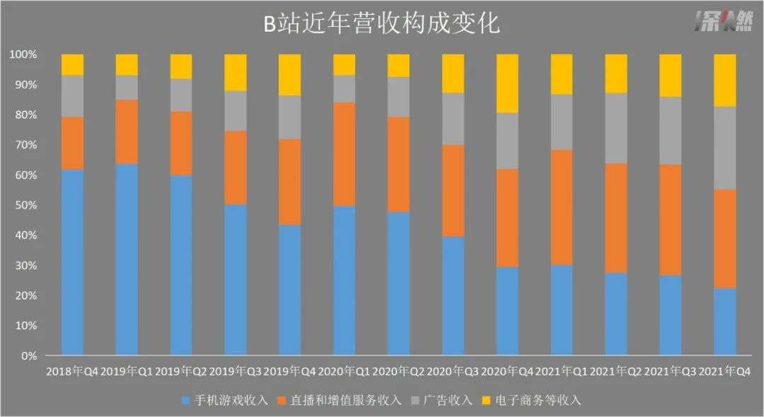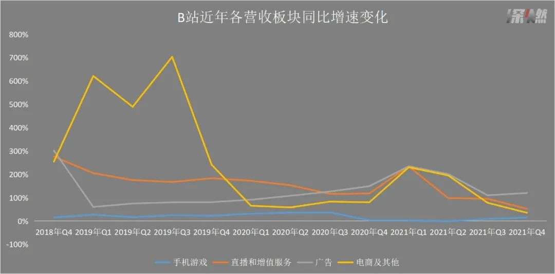 B站近年各营收板块同比增速变化 制图 / 深燃