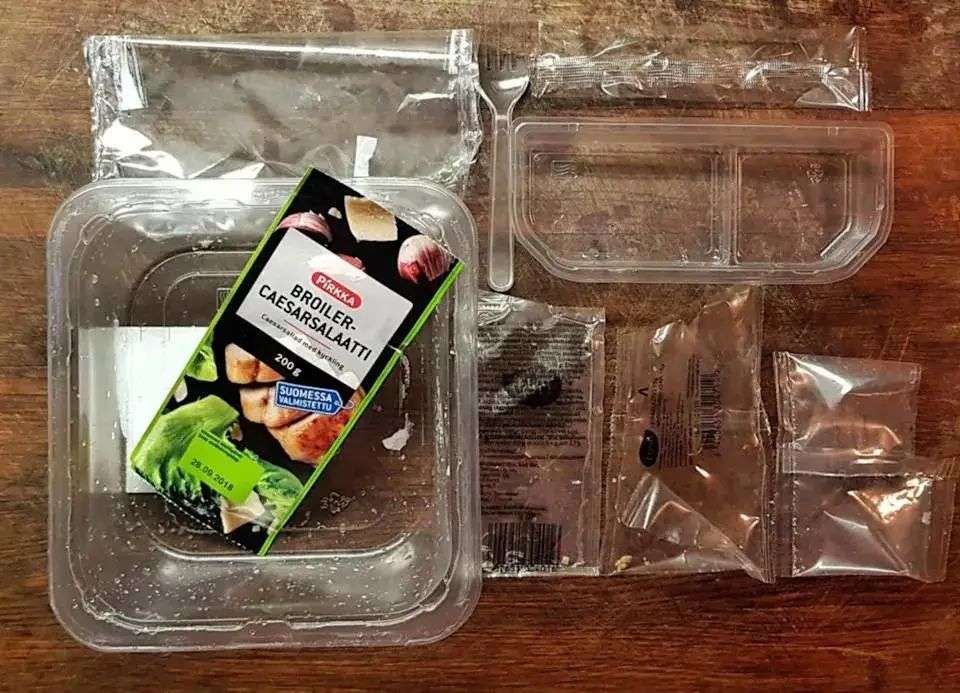 一份简单沙拉包含这么多塑料. 图片来自:reddit / Suomi